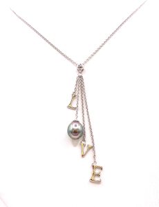 Pendentif Cœur penché en argent 925/000 rhodié avec une Perle de Tahiti