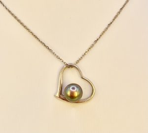 Collier en argent 925/000 rhodié avec une Perle de Tahiti