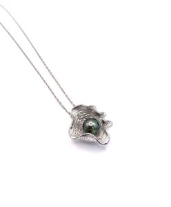 Collier Boules intercalées en argent 925/000 rhodié avec une Perle de Tahiti