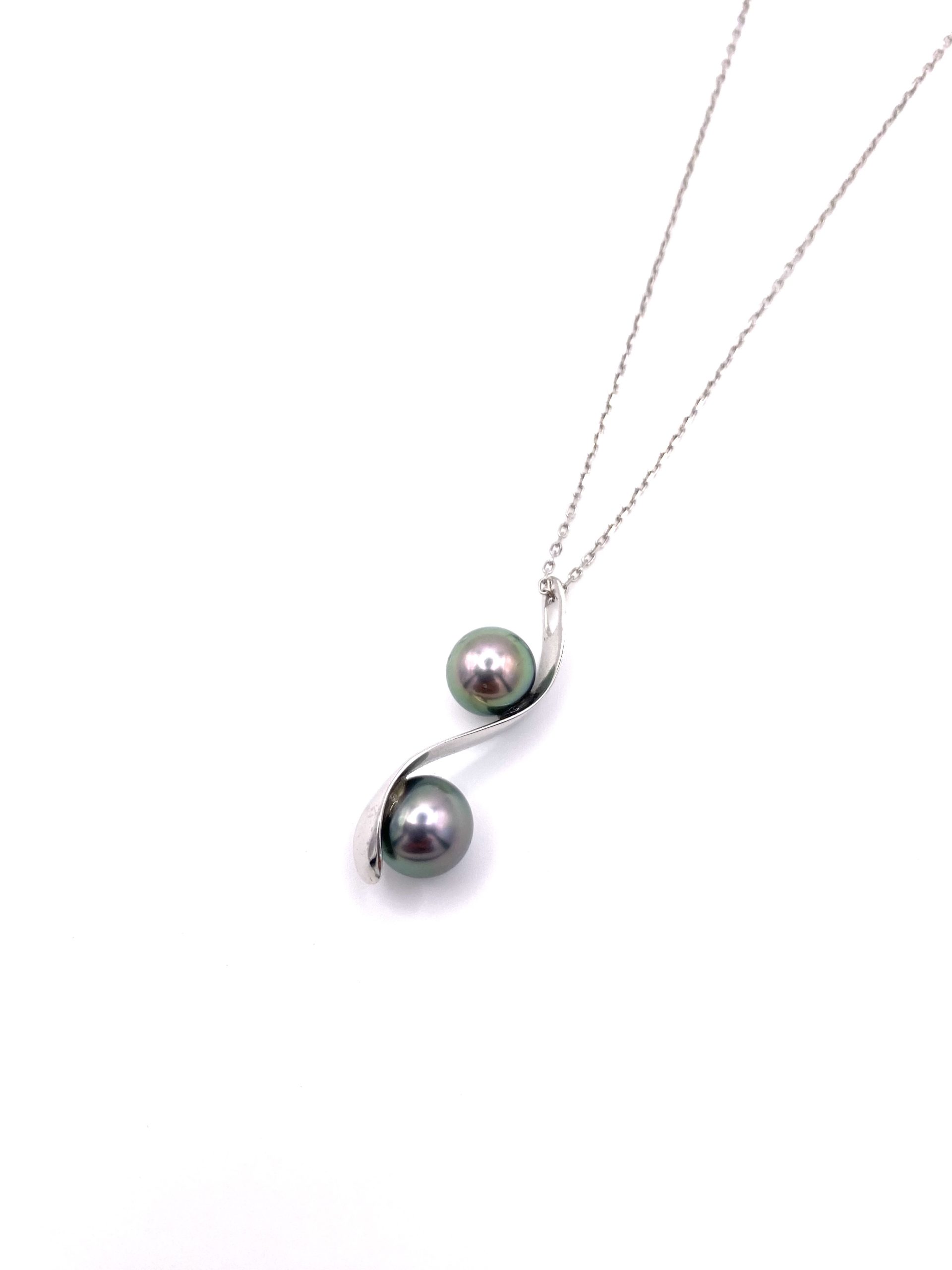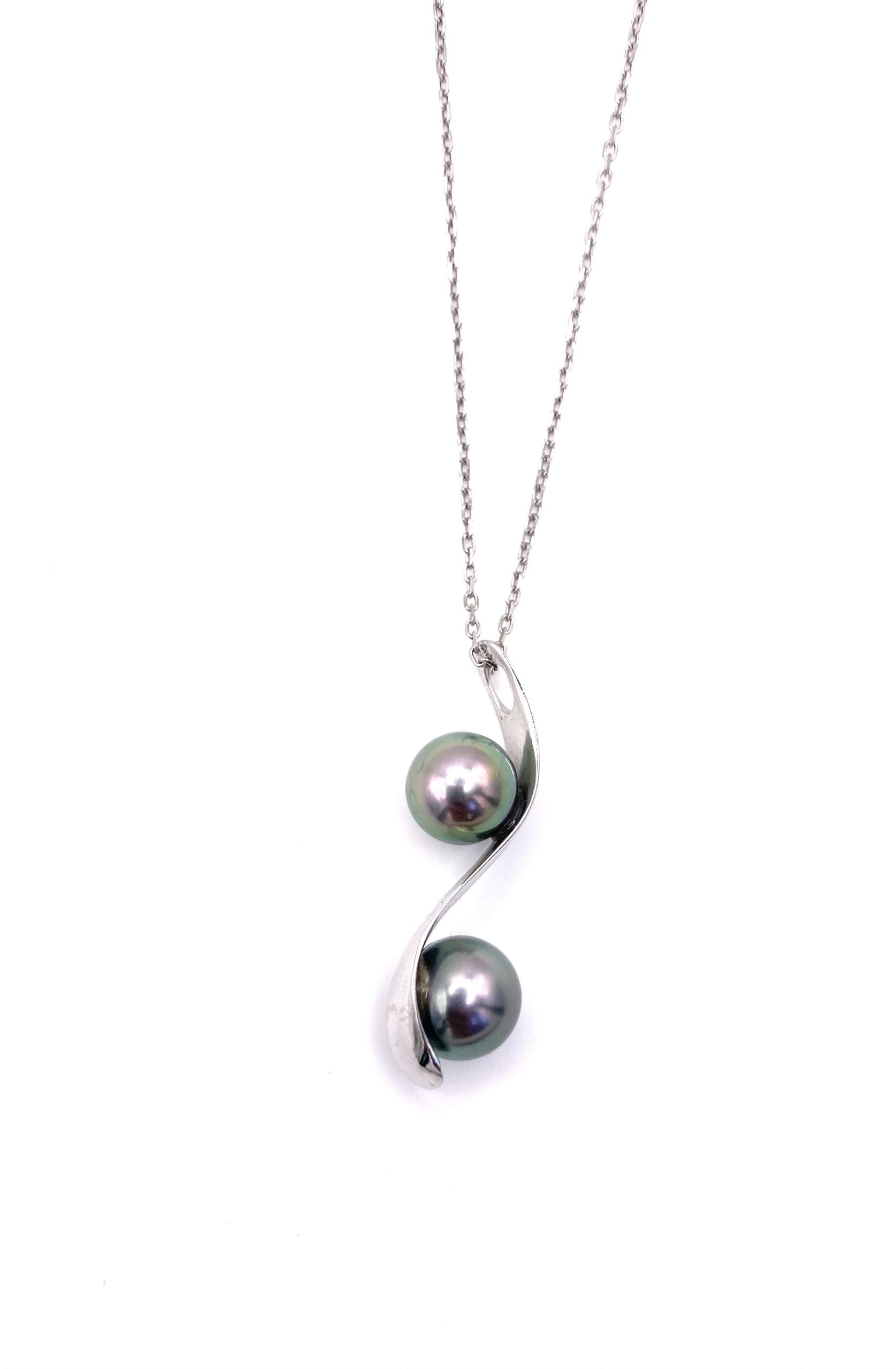 • Collier Toi&Moi ondulé en argent 925/000 rhodié avec 2 Perles de Tahiti