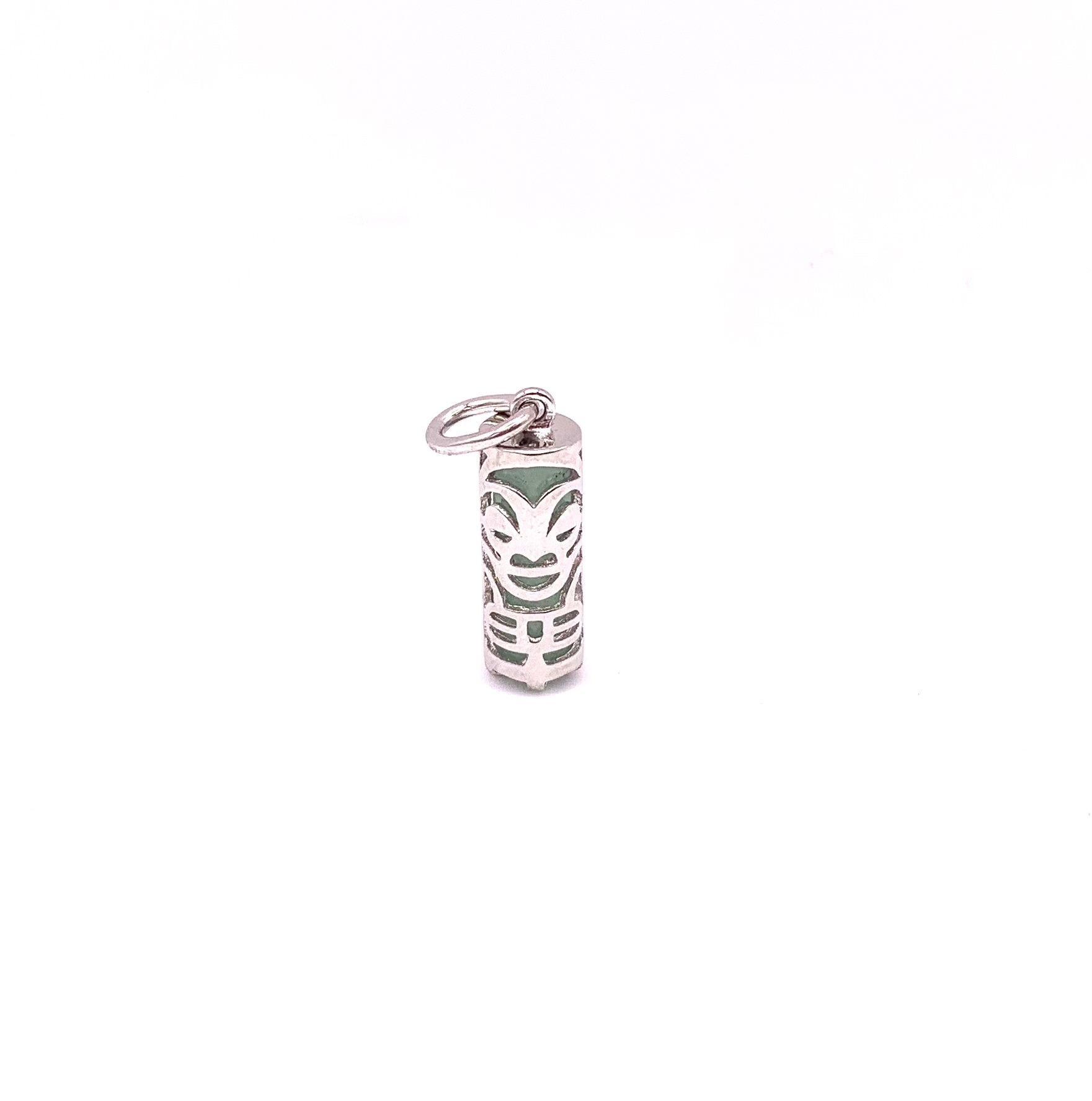 Pendentif Tiki Force en argent .925 rhodié avec de l’aventurine verte – 15 mm
